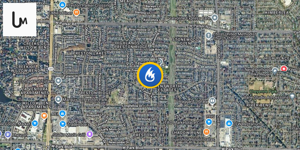 House Fire (Plano) Engine 12 is on scene with heavy smoke showing from a two story house on Maize Drive. Pulling a line for fire attack in the garage. Truck 2 has ventilation and Truck 5 has search